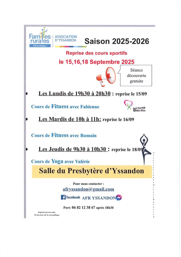Associations SOCIETE COMMUNALE DES CHASSEURS D’YSSANDON Président : Alain VEZINE | 06.78.76.76.35Trésorier : Yves TOURNERIE | 06.18.63.23.83Secrétaire : Philippe LOUCHARD Date de création :17 octobre 1966 Association type loi 1901Siège social : Mairie d’yssandon Rattachée à la fédération départementale des chasseurs de la Corrèze qui est dotée d’un statut ministériel